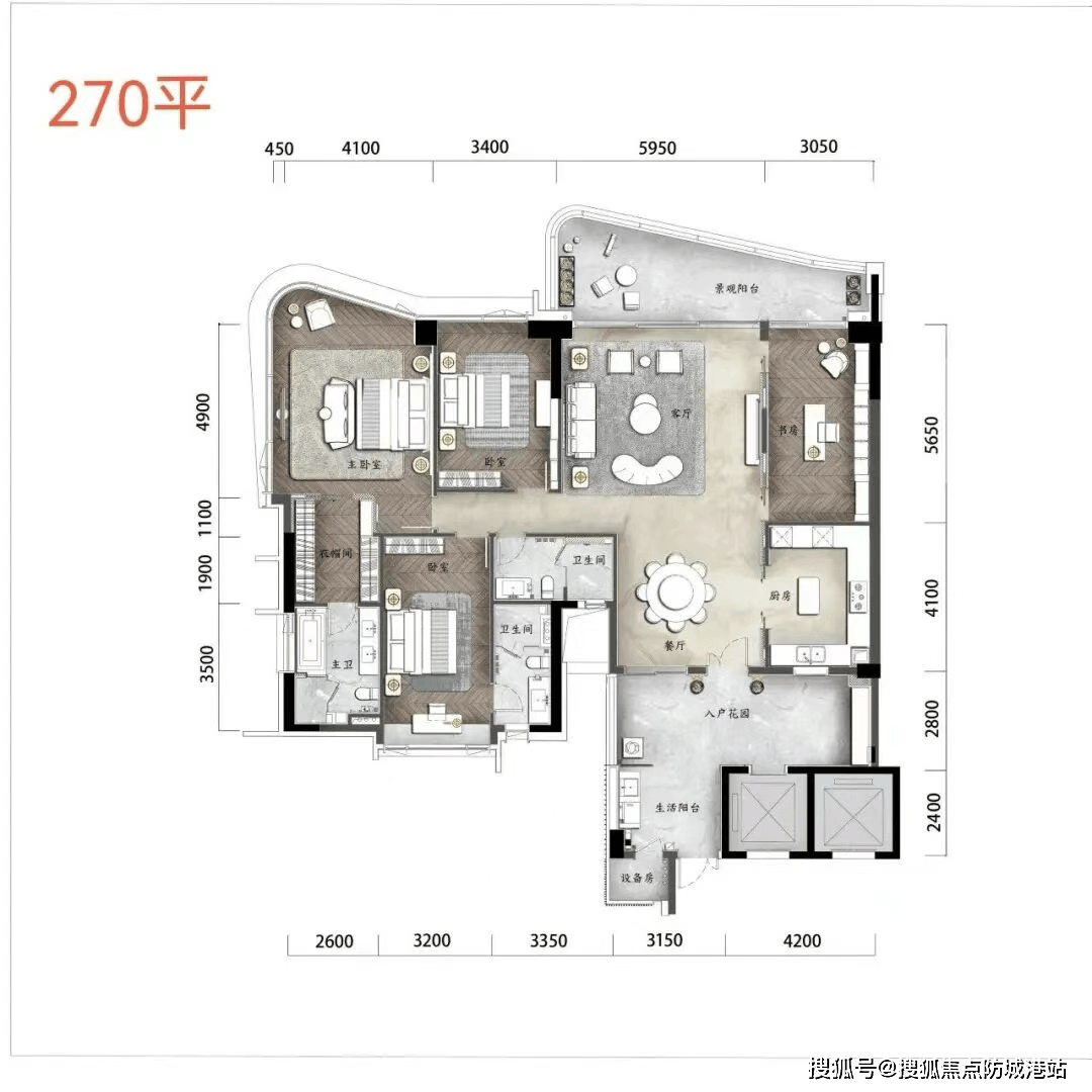 高层洋房:主力户型为 140–270㎡四房双主套,采用 4 梯 3 户布局,保障业主出行便捷性和私密性。户型设计亮点突出,所有户型均为南北通透,采光通风极佳;配备超大景观阳台,最大阳台长度达 9 米,可俯瞰 270° 江景和中央园林景观。其中,270㎡王牌户型配备约 9 米邮轮式阳台、28㎡私家庭院及 42㎡主卧套房,实现 “空中别墅” 的居住体验;200㎡户型通过可变书房设计,实现 7.2 米超大开间,可灵活适应家庭成长需求,实用率高达 90% 以上。
